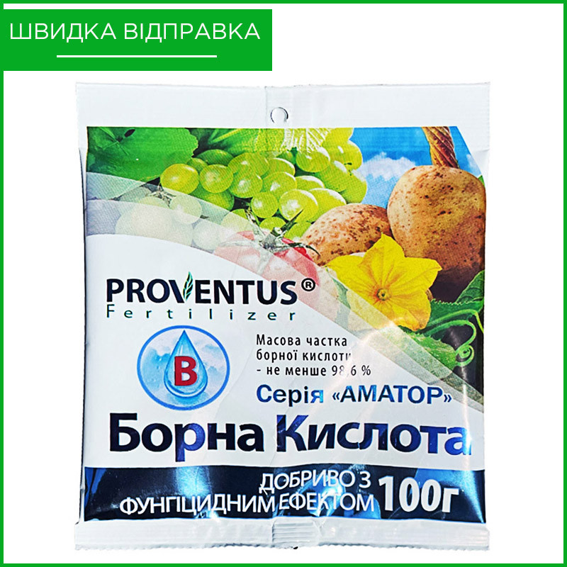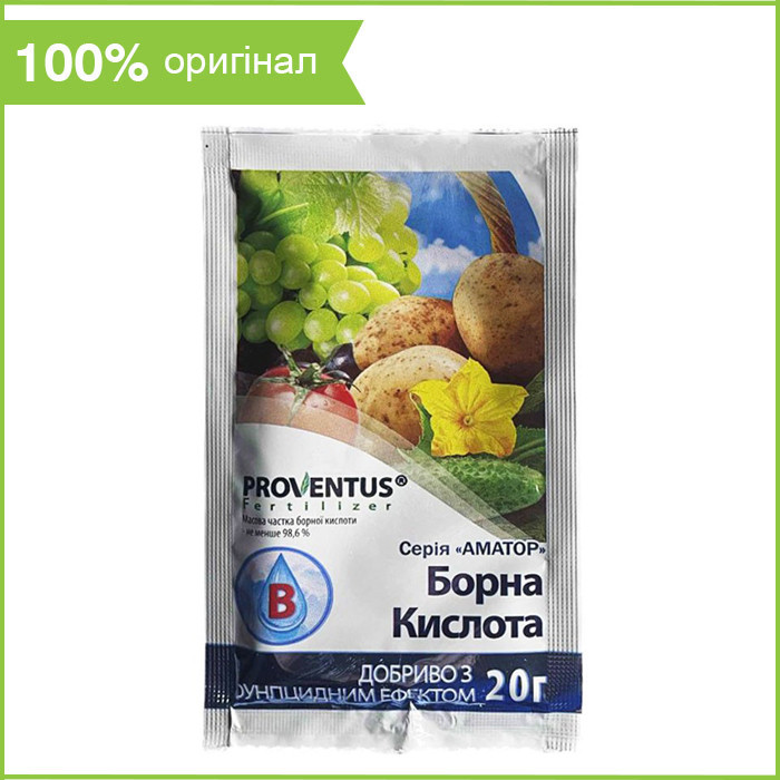 Борна кислота для цвітіння Декоративні рослини також підгодовують розчином борної кислоти. Оптимальна концентрація для обприскування більшості видів квітів — 0,5 г на 10 л води. Для кореневої підгодівлі готують більш "сильний" розчин: 1-2 г на 10 л води.