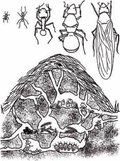 У мурашнику живуть самки, самці й робочі мурашки. Робочі мурахи- це розвідники, годувальники, няньки, будівельники, солдати, постачальники, пастухи.