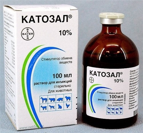 100 мл 480 грн. Катозал – стимулятор обміну речовин у дрібних і великих тварин, а також тонізуючий засіб. Це препарат комплексної імуностимулюючої дії, для підвищення тонусу всього організму, у разі його пригнічення хворобою, стресом або втомою.