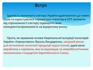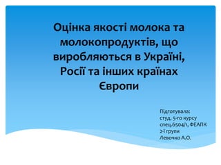 Оцінка органолептичних показників молока (ДСТУ 3662-97, ГОСТ 28283-89) Щоб визначити якість і віднести одержане молоко до певного сорту у відповідності з …