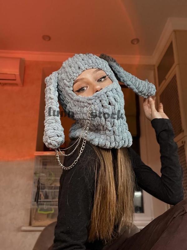 Балаклави з вушками. Балаклава жіноча стильна з вушками в’язана молодіжна модна світло-сіра Залишити відгук. 740 ₴. Є в наявності. В’язана балаклава шапка Alize Puffy блакитний, з вушками довгими Зайчики Окружність голови 52см 1. 596 …