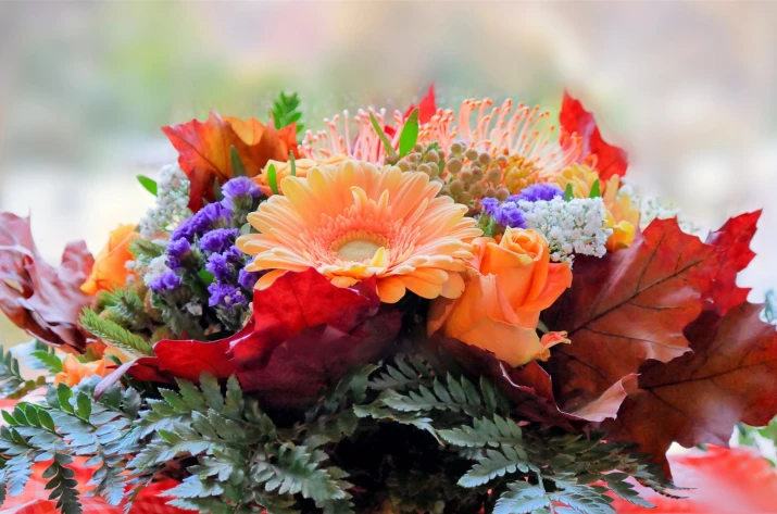 Споконвічно осінніми вважаються хризантеми, гладіолуси, жоржини і айстри. Складаючи букет з осінніх квітів, флорист прагне зробити його виключно яскравим і насиченим. Тому тут актуальні великі суцвіття і яскраві глибокі відтінки.18 жовт. 2021 р.